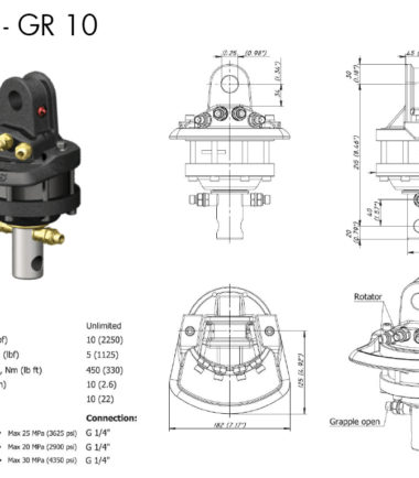 - Chiusura grapple: G3/8″ (max 300 bar).